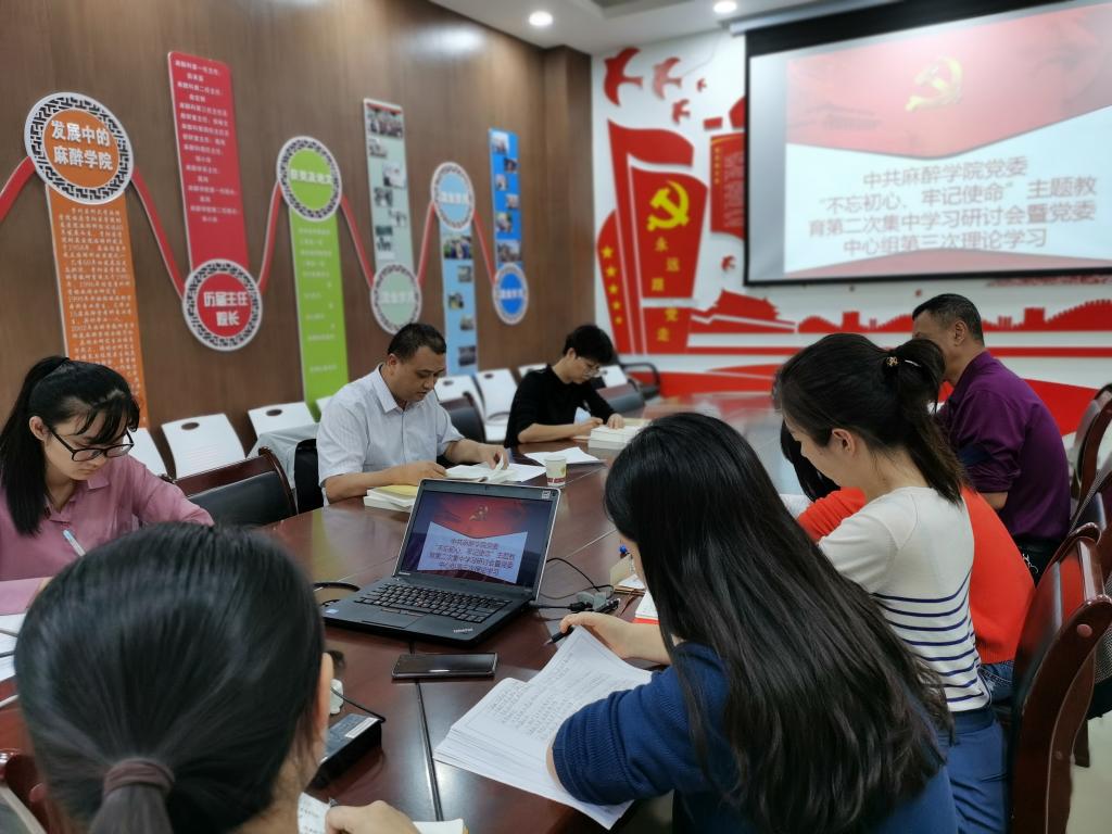会议室召开“不忘初心、牢记使命”主题教育第二次集中学习研讨暨党委中心组第三次理论学习会议。学院党委班子成员,各支部书记,办公室全体人员,教研室主任参加。会议由党委书记李宏伟主持。