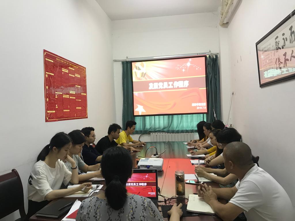 会议室开展了以“学习发展党员工作程序”为主题的培训会。培训会由教工党支部书记徐青主讲。