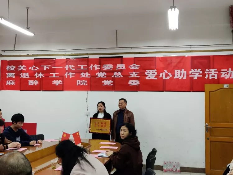 捐资助学授牌仪式上,张雪晴书记宣布本次爱心助学受助学生名单,并由校关心下一代工作委员会副主任、原贵阳医学院副书记张晓林教授向国产视频