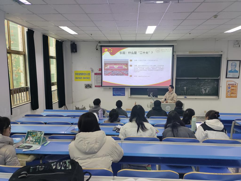 为深入学习贯彻习近平新时代中国特色社会主义思想和党的二十大精神,激励广大青年以读促思、以读促行,学思用贯通、知信行统一,学生党支部于12月开展了“介绍一本好书、分享一次心得、增进一次交流”读书分享交流主题党日活动,并鼓励大家走进班级进行理论宣讲,营造浓厚的读书学习氛围,同时推动支部文化建设。