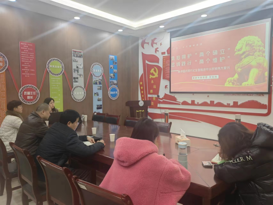 在会议室召开学习贯彻党的二十大精神专题宣讲报告会,学院党委委员、教职工参加了此次会议。