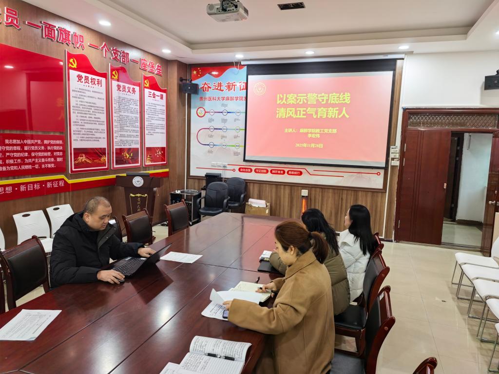 教工党支部召开专题党课,党支部书记李宏伟以“以案示警守底线、清风正气育新人” 为主题,为党员教师授课。