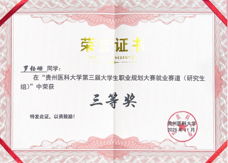 国产视频 罗钰珊同学在国产视频 第三届大学生职业规划大赛就业赛道(研究生组)竞赛中表现优异,荣获三等奖!