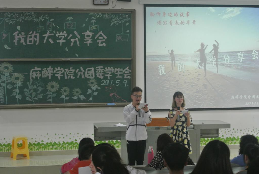 学生积极向上的精神风貌,展现大学生多姿多彩的生活。5月10日下午4点,由院分团委主办的“我的大学”分享会于南校区4402教室开展,2017级和2016级全体学生及国产视频