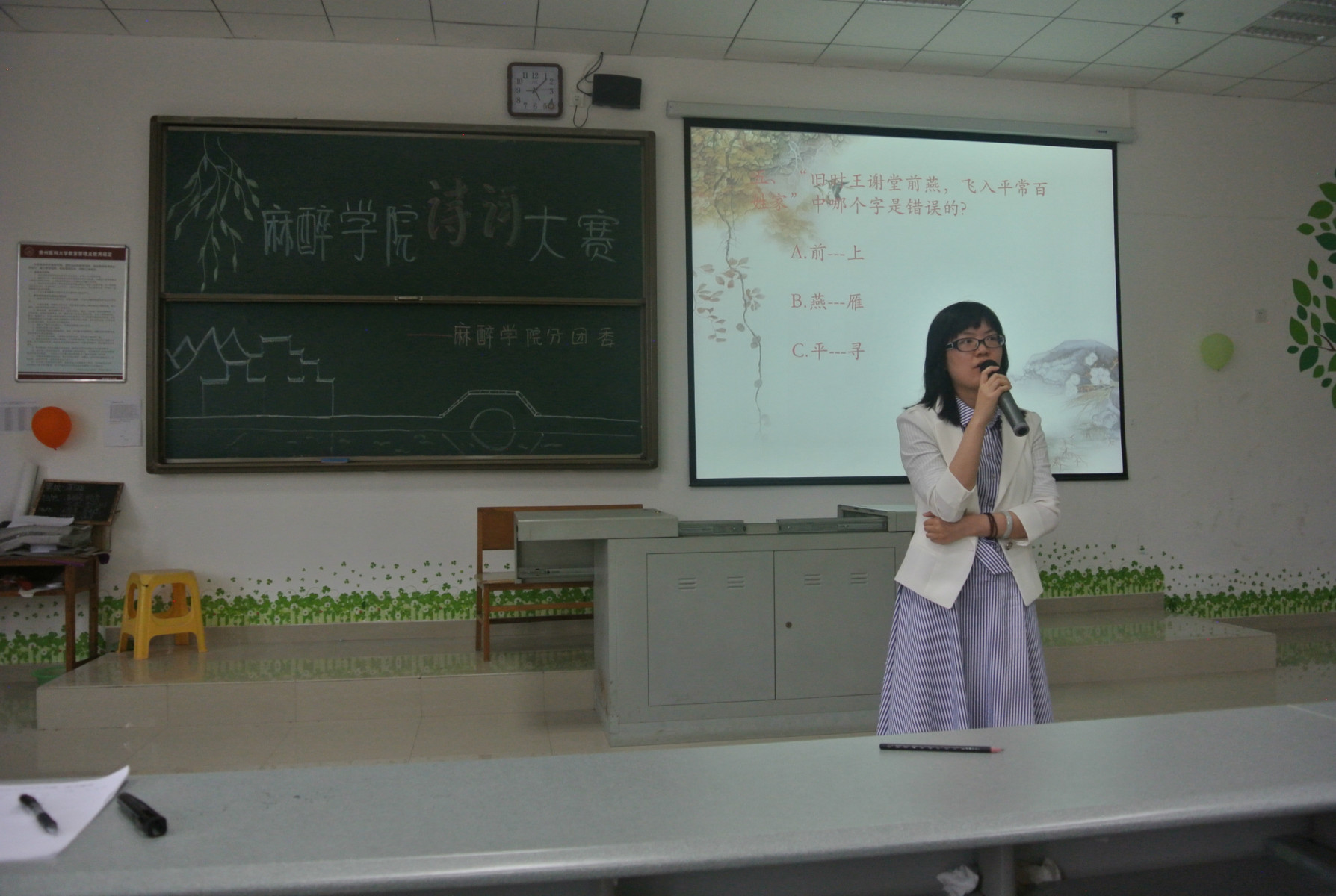 “宠辱不惊,看庭前花开花落;去留无意,望天上云卷云舒”。此次比赛中,老师与学生相聚一堂,大家以诗会友,以诗为友,共同享受一场诗歌的盛宴。文以载道,开卷有益。本次诗词大会设计精心、成效显著,不仅体现了把“立德树人”作为高校育人的根本任务,更展现了“以文化人,以文育人”的精神财富,引导学生在弘扬中华优秀传统文化中坚定文化自信,有利于麻醉学子诗词素养的提升,达到了以文化人、以文育人的目的。