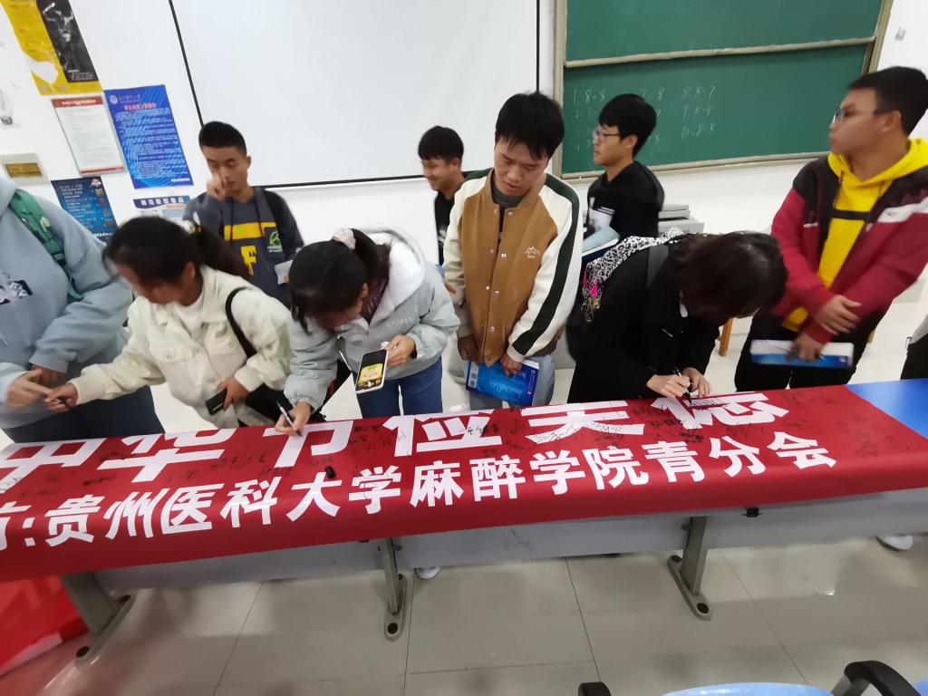 青年志愿者联合分会在南校区4501、1101、7301教室进行活动宣讲,开展签名倡议活动。宣讲中,国产视频