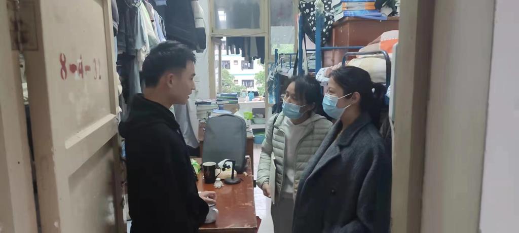 在检查中,吴彦嫢详细询问了学生学习情况、就业打算和假期去向,提醒同学们注意用电安全、财产安全,叮嘱学生切勿私拉电线以及使用大功率用电器,弘扬节约能源的重要性。针对近期严峻的疫情形势,吴彦嫢提醒同学们节假日期间严格遵守学校疫情防控要求以及宿舍管理规定,严格落实个人防控责任,时刻做好个人防护,为疫情防控贡献自己的力量。