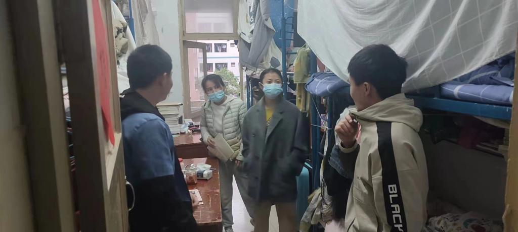 党委副书记吴彦嫢、辅导员陈燕秋及部分学生党员于3月30日下午对北校区学生寝室进行走访,进一步排查学生宿舍安全隐患及组织内务检查。