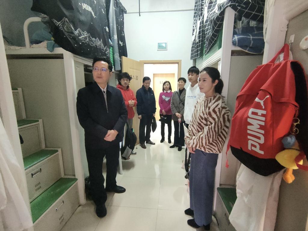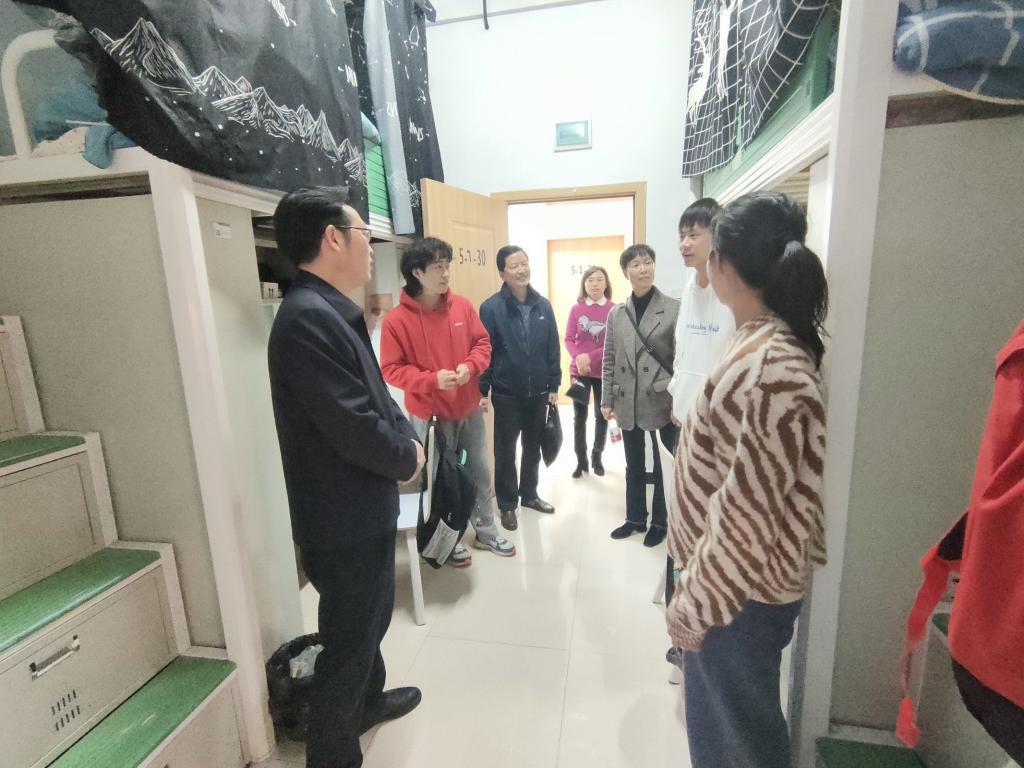 陈代勇来到学生所在的五栋宿舍,和同学们就学校生活、课外活动、学业规划等问题亲切交谈,并勉励同学们要珍惜光阴,好好学习,不断提高综合素质,努力使自己成为德才兼备全面发展的大学生。对近期有家庭变故的学生,他鼓励要用乐观向上的精神面对困难,努力学习文化知识,用知识改变命运,还反复叮嘱学院老师们要加大对困难学生的关心和帮助,助力学生成长成才。