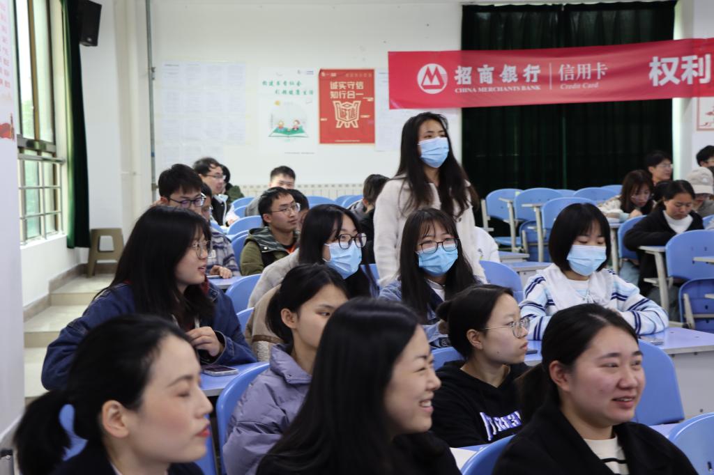 招商银行消费者权益保护讲师雷婷从适度消费、远离校园贷、合理使用电信卡、线上分期消费四个板块向同学们进行宣讲,利用一系列的视频,生动形象的图片以及具体的案例为同学们分析了当代大学生容易被诈骗的原因,诈骗常见的手段与陷阱和被诈骗后出现的不良后果;同时,还准备了有奖竞答环节,让同学们积极参与其中,加深自己对防范金融知识诈骗的了解。在宣讲活动结束之际,银行工作人员还向同学分享了防诈骗的指南手册,让同学们加深对防金融诈骗知识的学习,提高防范意识。