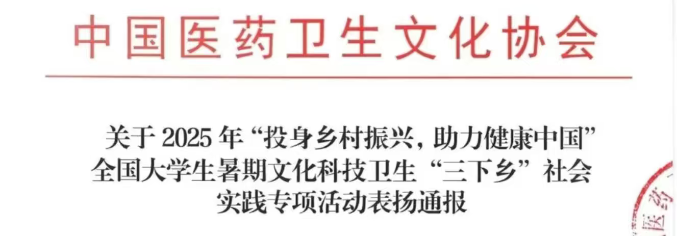 近日,由中国医药卫生文化协会指导的关于2025年“投身乡村振兴,助力健康中国”全国大学生暑期文化科技卫生“三下乡”社会实践专项活动表扬通报正式公示,国产视频