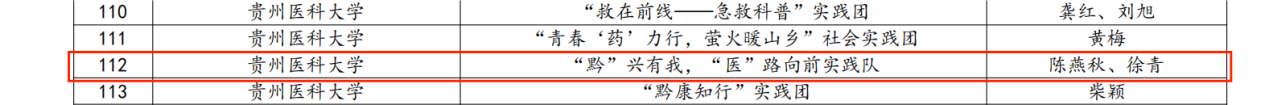 “黔兴有我,医路前行”实践队成功入选表现突出团队。
