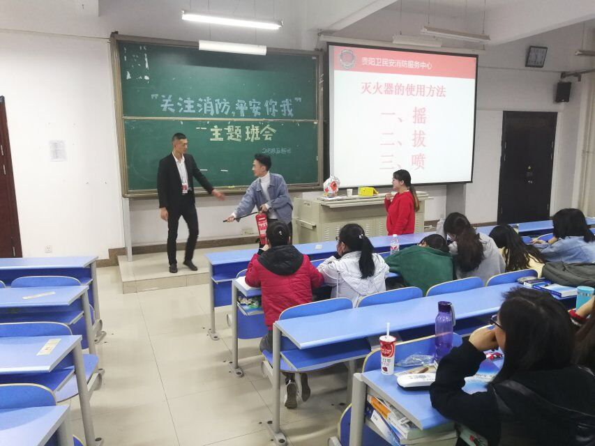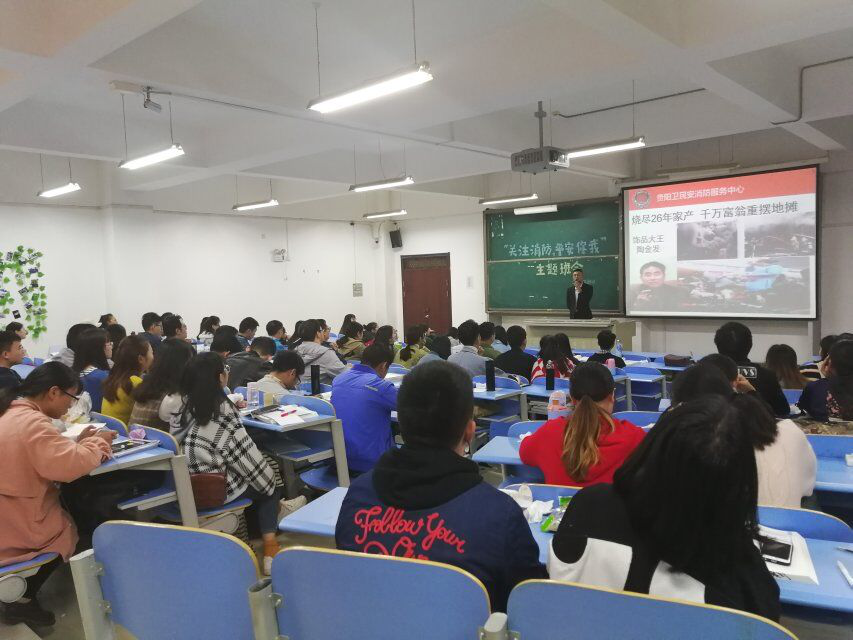 为牢固树立校园消防安全意识,承担起防火安全责任,打造安全、文明、和谐的平安校园,预防和减少各类火灾事故的发生,2018年10月24日、25日国产视频 党委特邀贵阳为民安消防知识宣传服务中心的教员,分别在南北校区举办了以校园消防安全知识为主题的讲座,500余名师生听取了此次讲座。