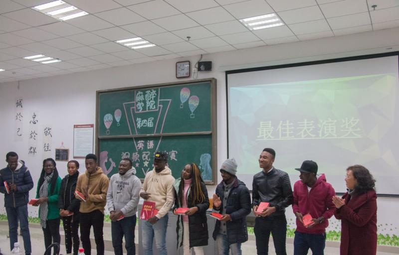 活动伊始,主持人介绍本次比赛的参赛队伍及评选规则,比赛共有11支队伍,其中由海外教育学院9名本科生组成一支中文配音表演队伍。此次比赛中,生动的电影配音秀展现了同学们优秀的英语口语表达能力,欢快的动画情节、深情感人的温馨片段、深入人心的经典电影桥段都使观众为之喝彩,更将其中的经典情景真实地展现在眼前。其次,海外教育学院留学生们带来的表演《高杰的一天》,他们将中国生活中的场景串联成一场中文表演秀,生动地展现了留学生眼中的中国留学生活,生动有趣,为大家带来了欢笑与惊喜,获得现场热烈的掌声。观众们在欣赏到精彩影视的同时,也享受了一场听觉上的饕餮盛宴。