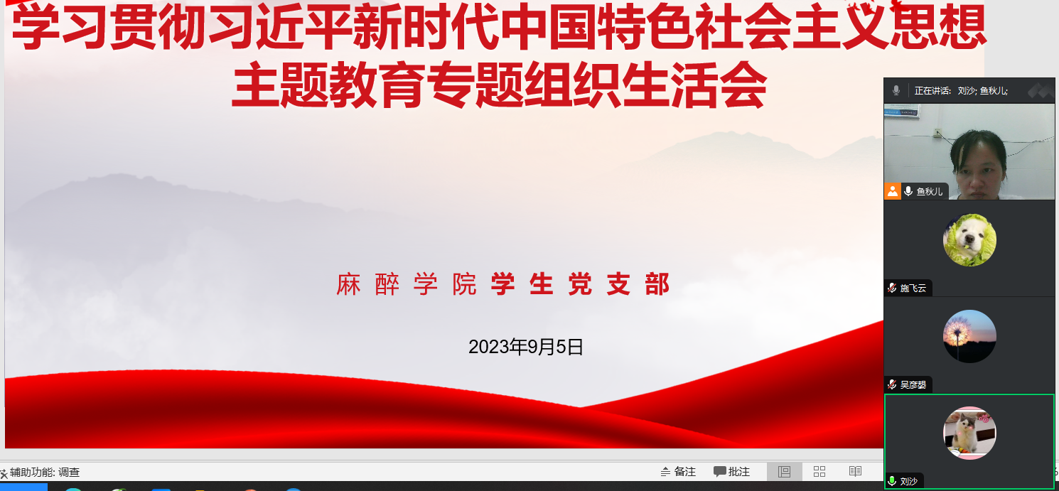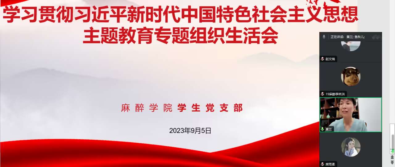 学生党支部通过腾讯会议方式召开了学习贯彻习近平新时代中国特色社会主义思想主题教育专题组织生活会。学院正处级组织员黄兰、党委副书记吴彦嫢出席,学生党支部全体党员参加。会议由支部书记陈燕秋主持。