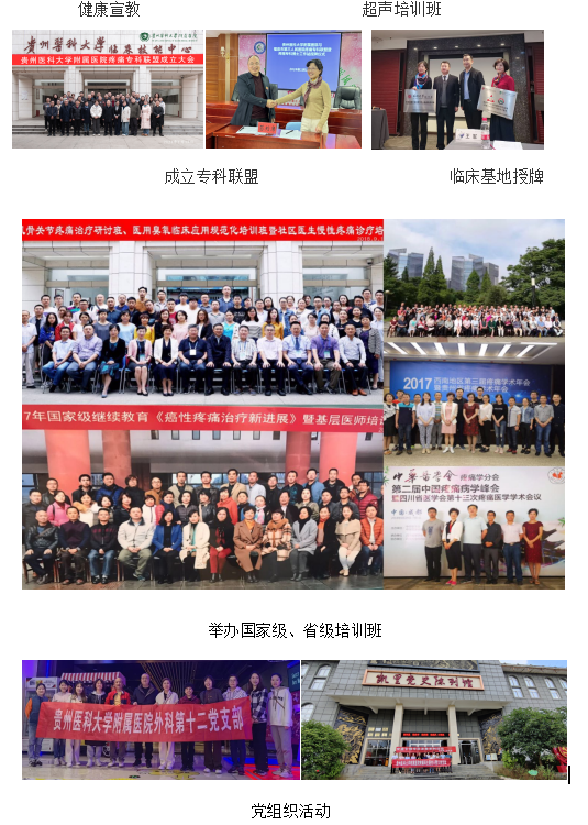 在学科建设方面,科室多次协办和承办国家级、省级疼痛继续教育学习班,定期开展超声引导技术培训班和微创介入手术培训班。科室积极履行社会责任,参与卫生厅、省医学会组织的疼痛义诊活动,每年配合"世界疼痛日"和"中国镇痛周"开展义诊活动,取得了良好的社会效益。此外,科室还积极开展基层帮扶工作,成立"疼痛专科联盟",定期帮扶县级、乡镇级医院,推动区域疼痛诊疗水平的整体提升。